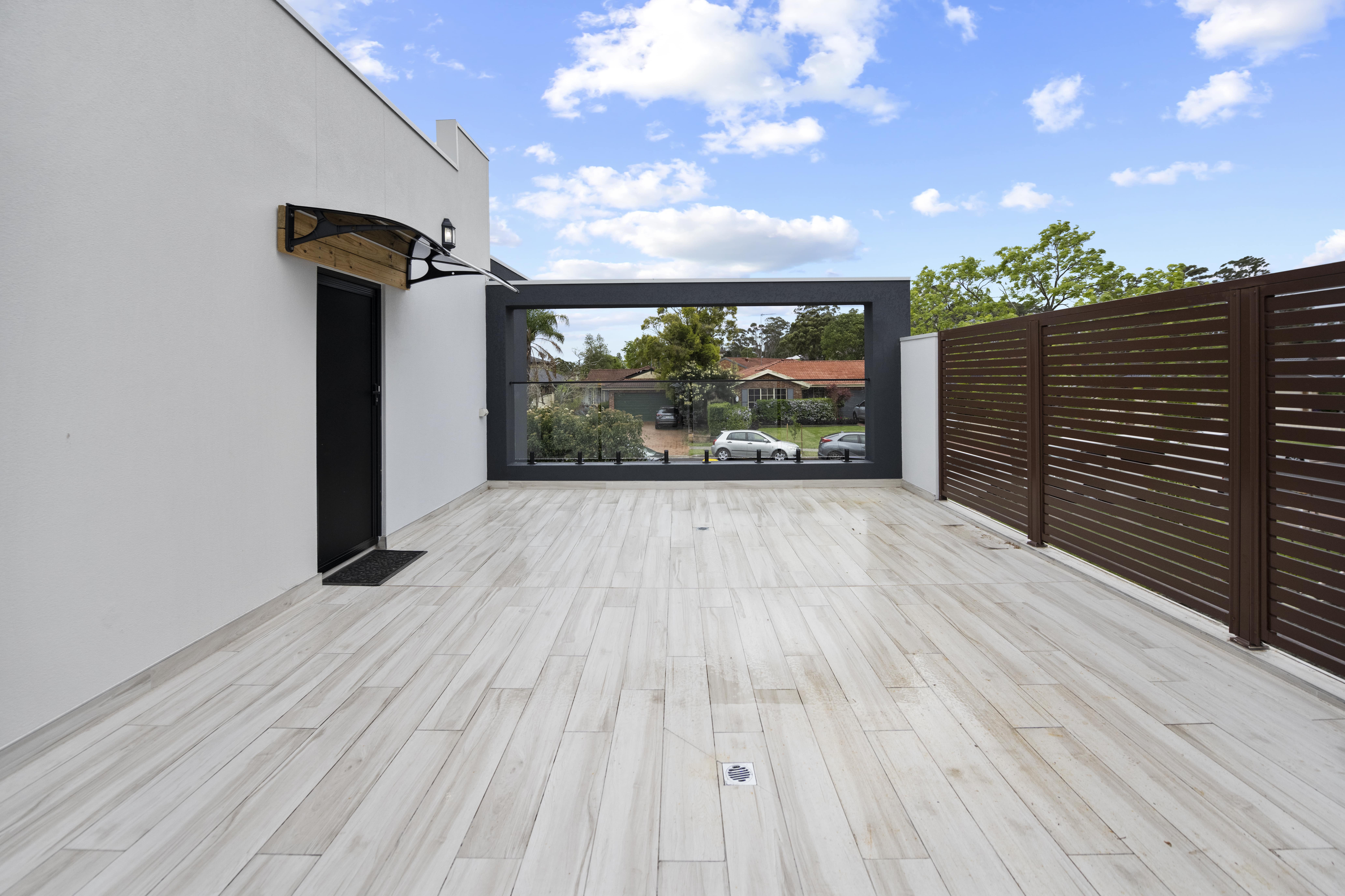 Expansive alfresco and balcony areas with tiled flooring and glass balustrades
